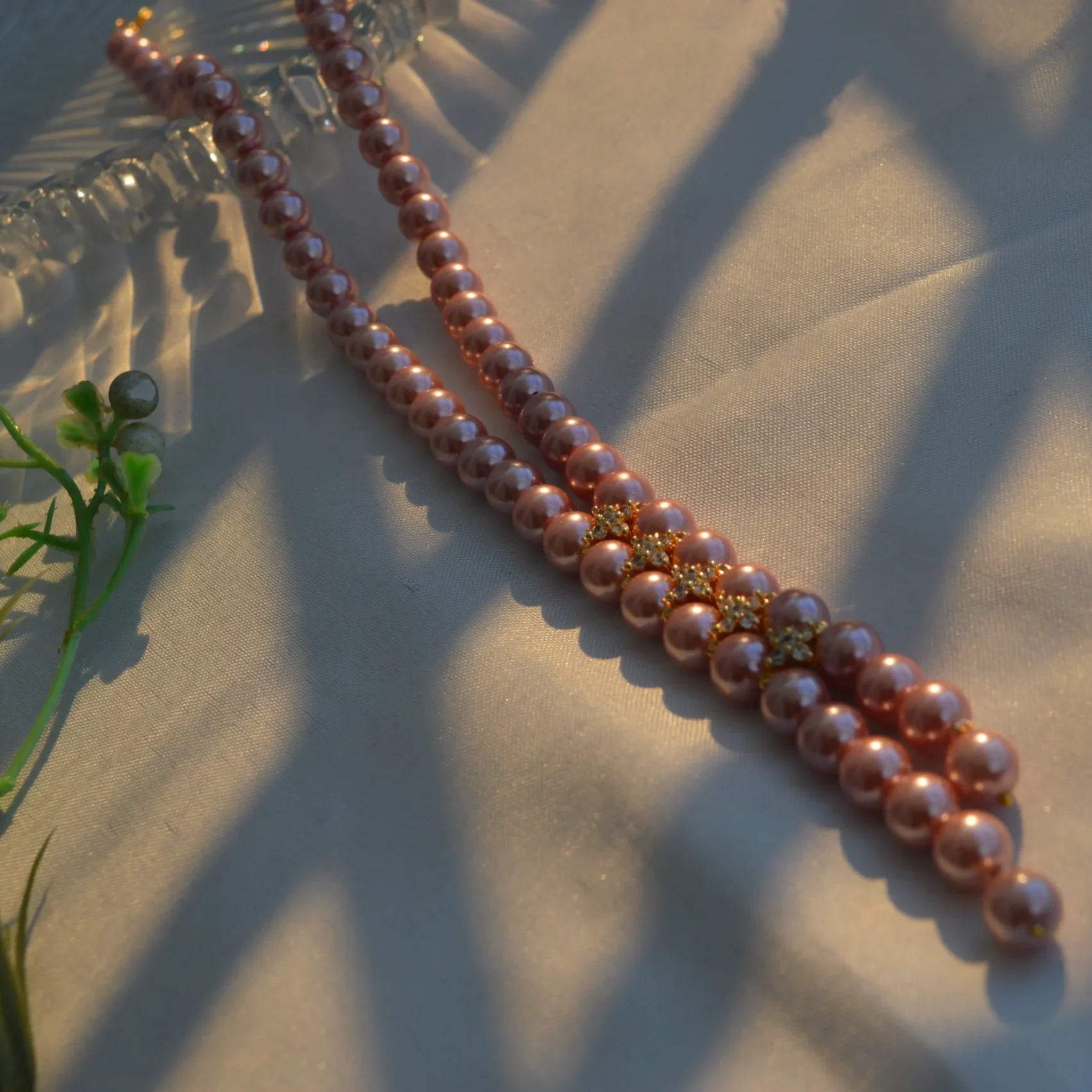 The Blush Pearl Royale Set is an ode to timeless elegance and feminine charm. Designed with two rows of soft rose-pink pearls, the necklace radiates a gentle, refined glow that enhances any outfit with effortless sophistication.