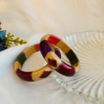 BOHO Rang Lac Bangle channels free‑spirited vibes with its bold patchwork of green, purple, red, and gold tones in a chunky, geometric design. Crafted from smooth lac for lightweight comfort, it fits effortlessly on any wrist. Layer it for bohemian festivals or pair with neutrals for an edgy everyday statement that turns heads.