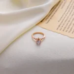 Timeless, graceful, and crafted to captivate — the Crown Radiance Solitaire Ring is a true ode to enduring elegance. Set in a warm rose-gold finish, this exquisite ring features a brilliant round-cut center stone held by a delicate crown-inspired setting, symbolizing royalty, strength, and love that stands above all.