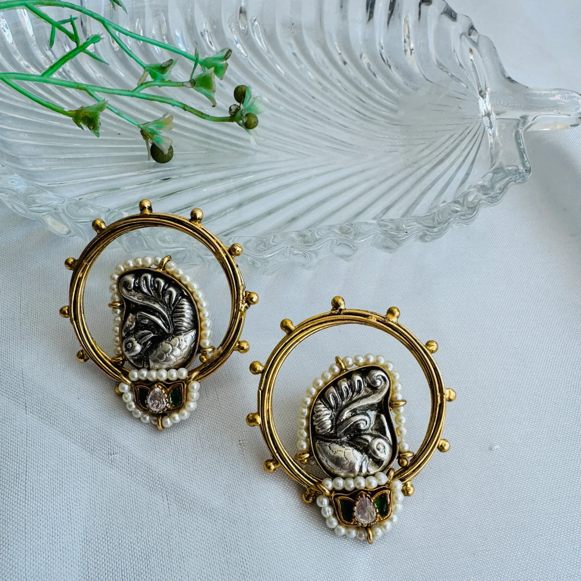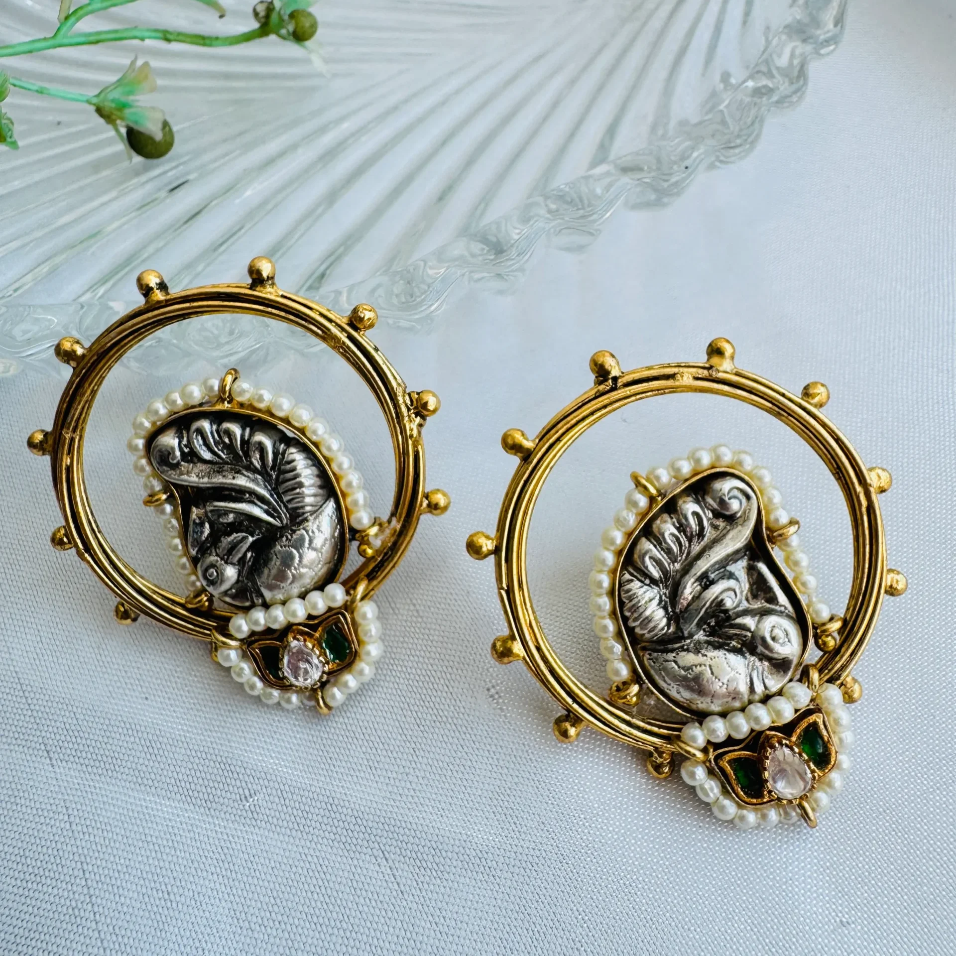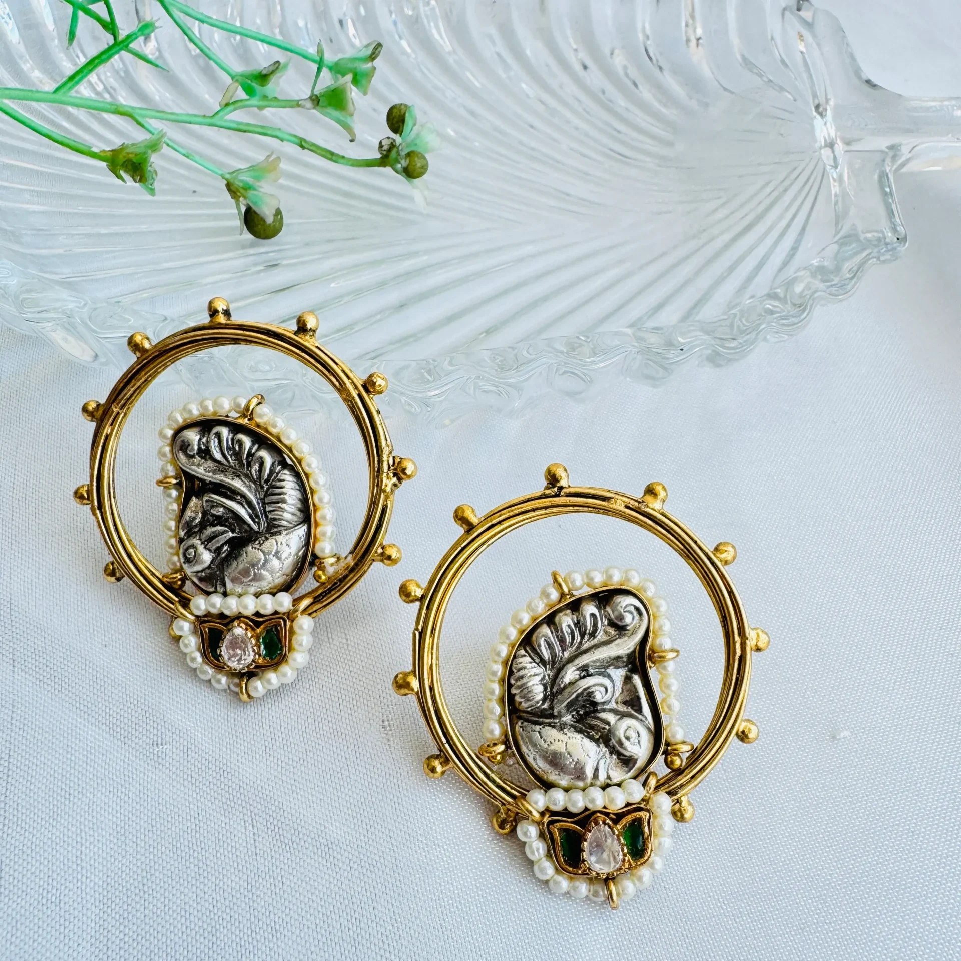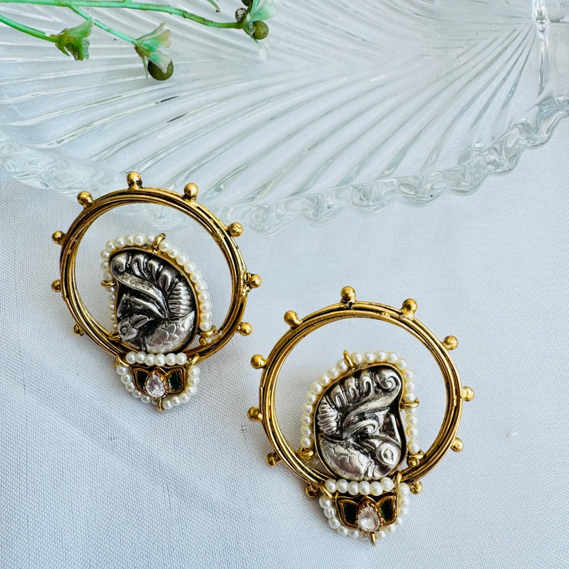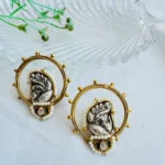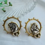 The Divine Ganesha Aura Earrings bring together spiritual elegance and intricate craftsmanship. Each earring features a beautifully sculpted Ganesha motif in antique silver tones, symbolizing wisdom, prosperity, and good fortune.