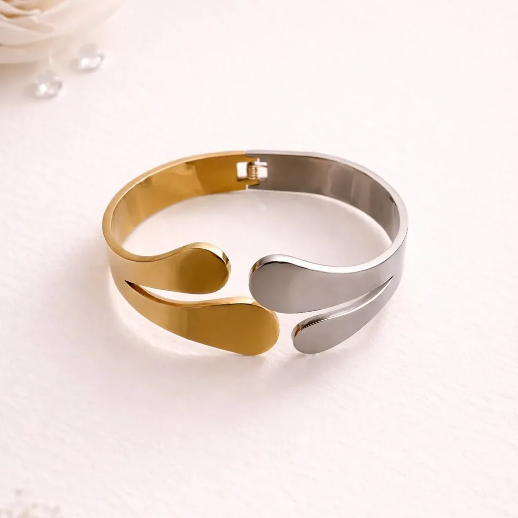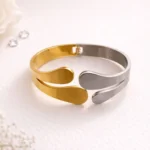 Minimal yet striking, the Dual Aura Link Cuff blends contemporary elegance with a bold two-tone design. Featuring a seamless fusion of polished silver and radiant gold, this bracelet symbolizes balance and modern sophistication. The sleek open-ended structure with a unique interlocking link detail adds a refined architectural touch.