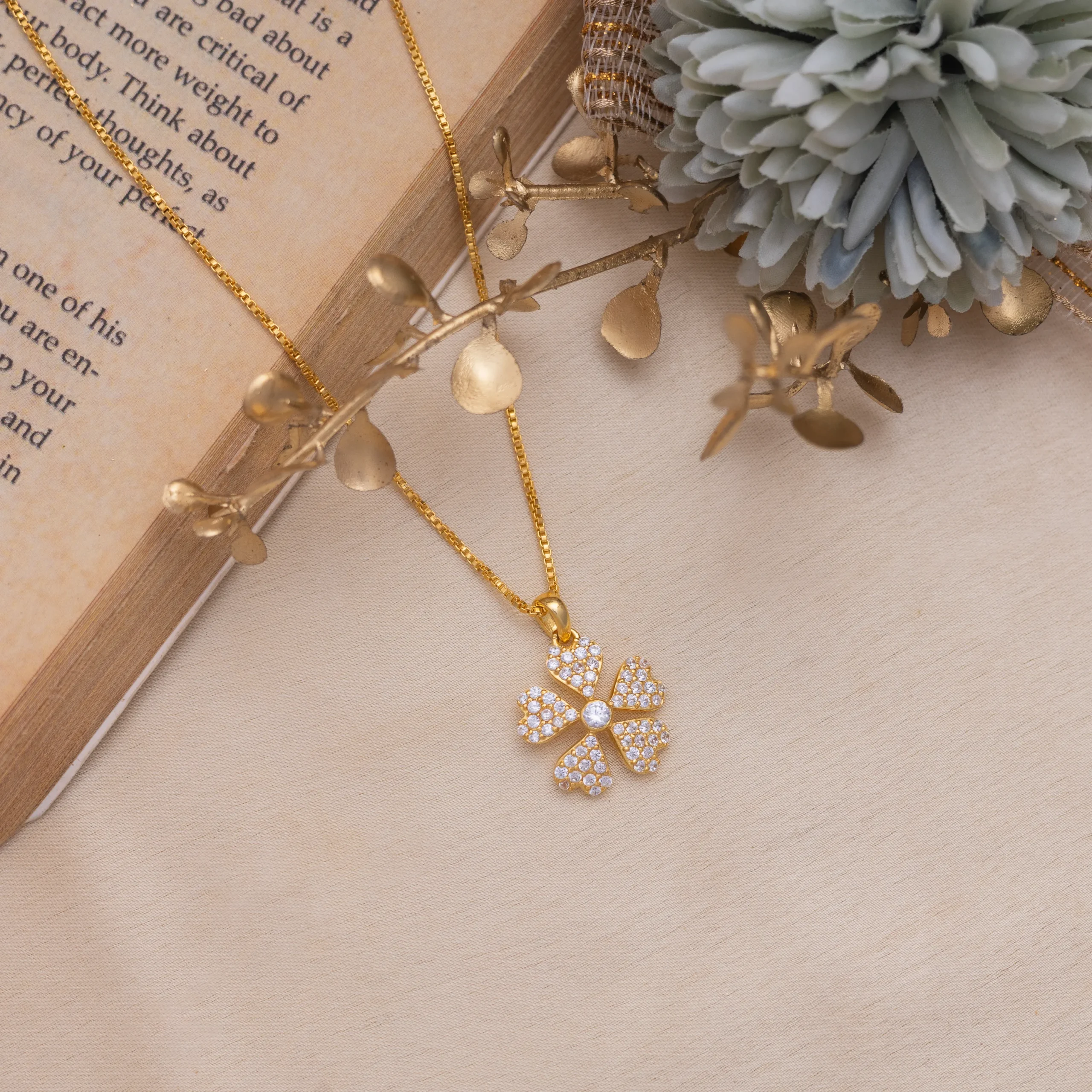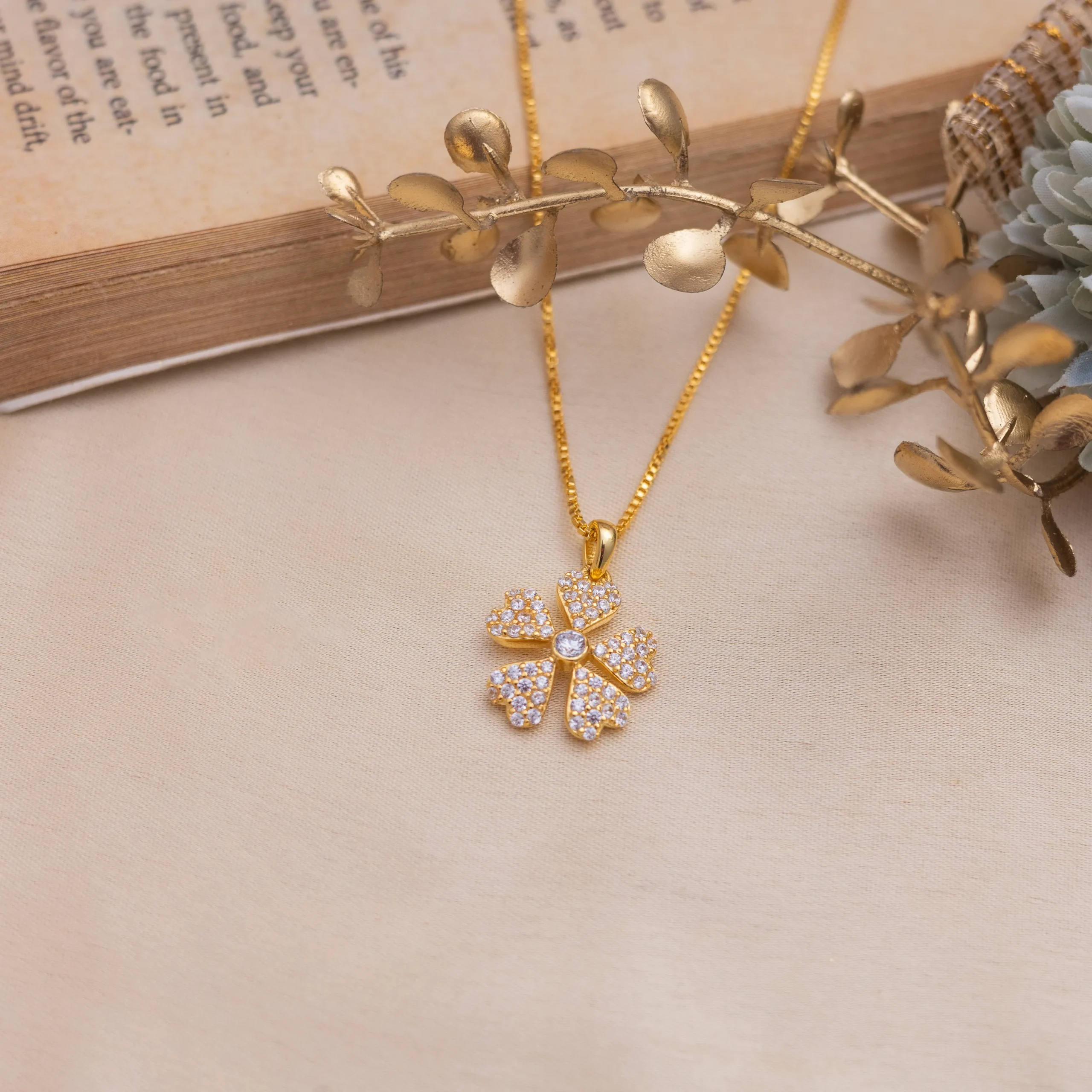 The Fortune Bloom Gold Clover pendant is a radiant symbol of luck, love, and luxury. Crafted with precision and passion, this exquisite pendant features a four-leaf clover design — each petal delicately encrusted with shimmering cubic zirconia stones that catch the light with every movement.