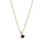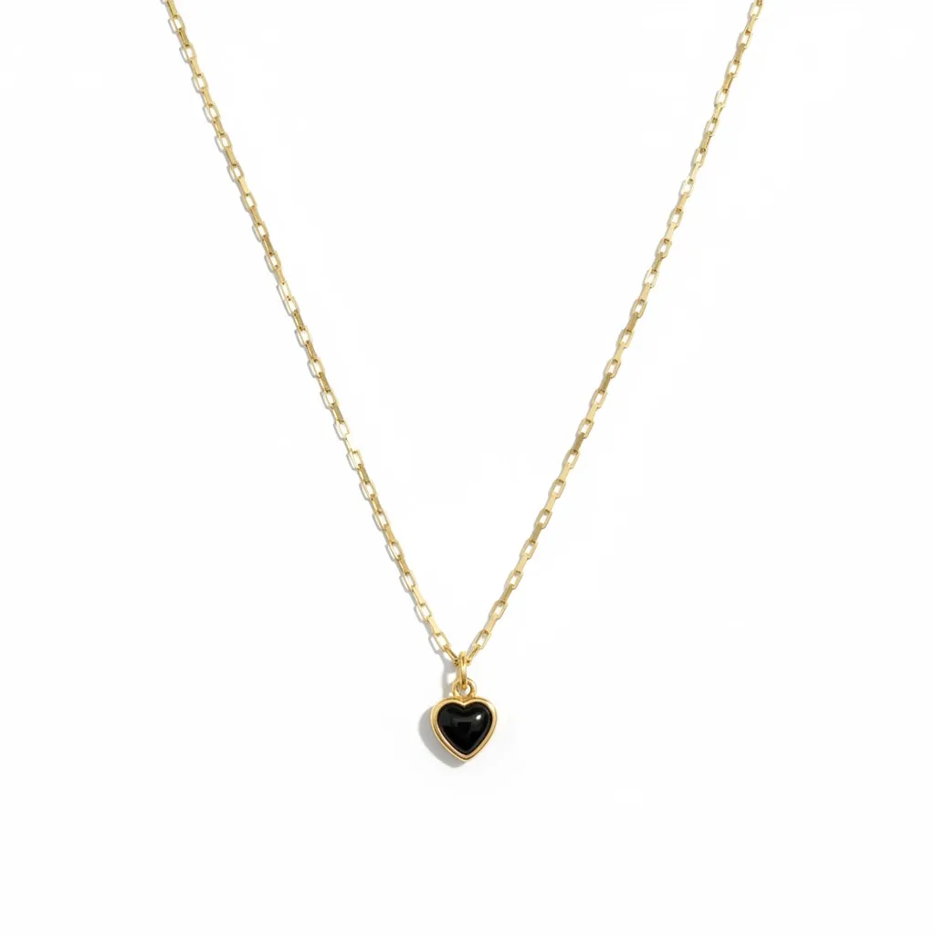Golden Heart Noir Necklace A timeless symbol of love and elegance, the Golden Heart Noir Necklace features a delicate gold-tone chain adorned with a sleek black heart pendant framed in gold. Minimal yet striking, this piece adds a touch of sophistication to both everyday outfits and special occasions. Lightweight and graceful, it’s perfect for layering or wearing solo as a subtle statement. An ideal gift to express love, strength, and understated luxury.