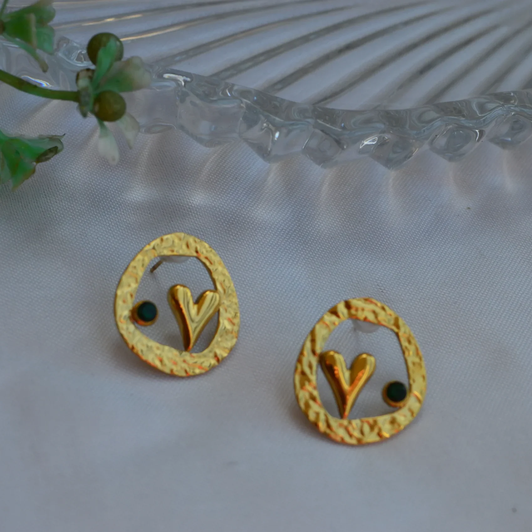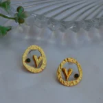 The Golden Orbit Minimal Studs blend contemporary design with a touch of artistic charm. Each earring features a textured gold-toned circular frame with a sleek, modern cutout at the center—creating an abstract, sculptural “V” form that adds unique character.