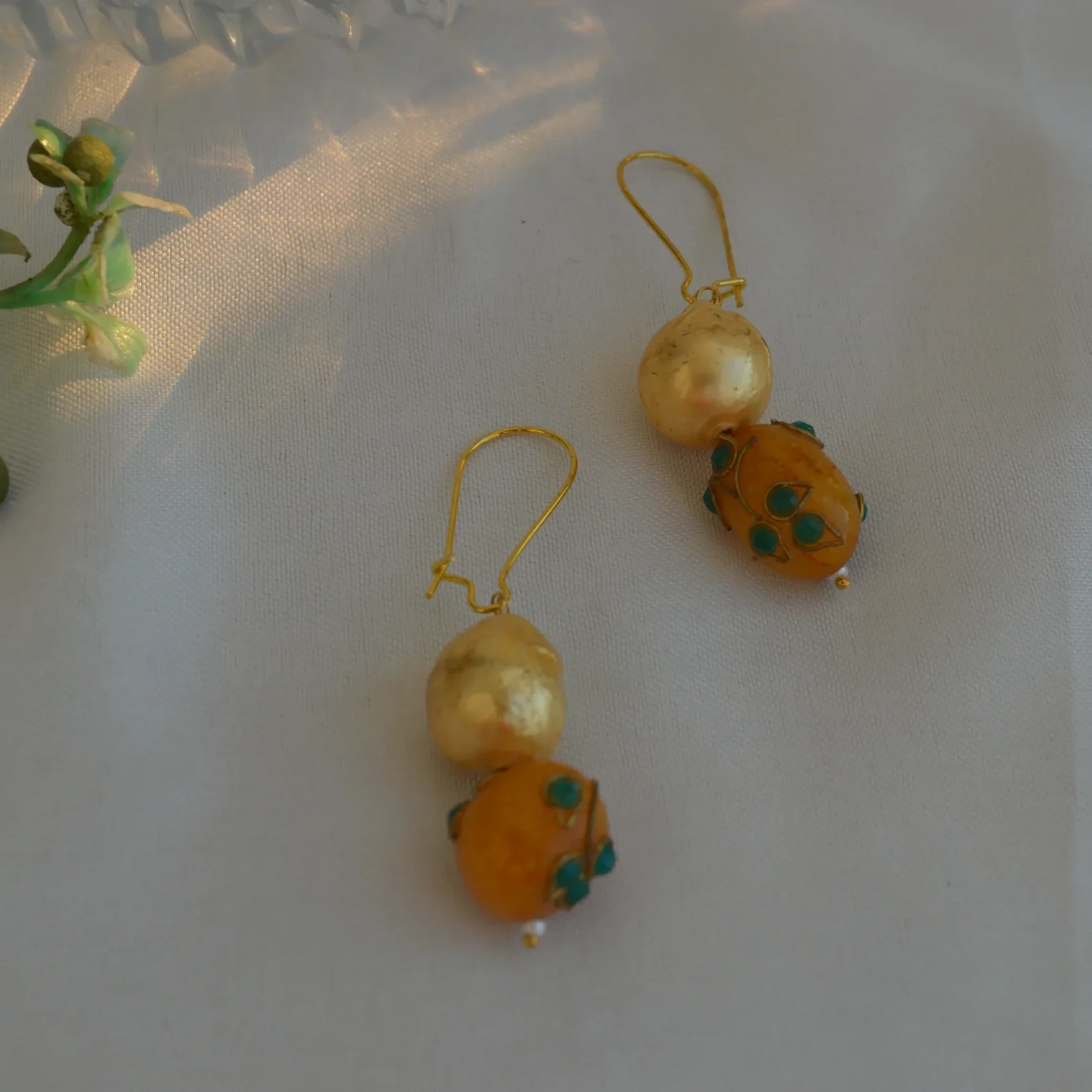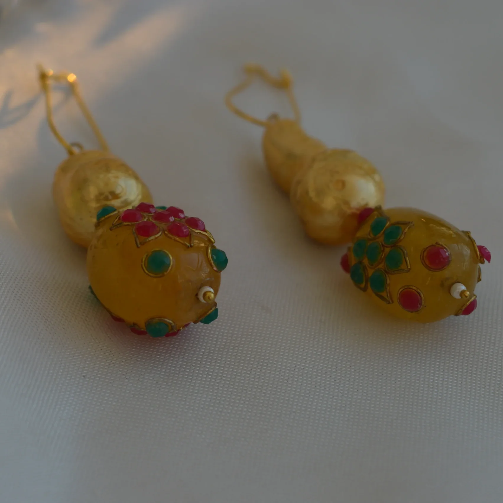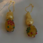 The Gulaal Gota Drop Earrings capture the joy and vibrance of traditional Indian festivities. Designed with classic golden gota-inspired elements, each earring features handcrafted yellow beads adorned with tiny pink and green accents, reminiscent of colourful festival décor.