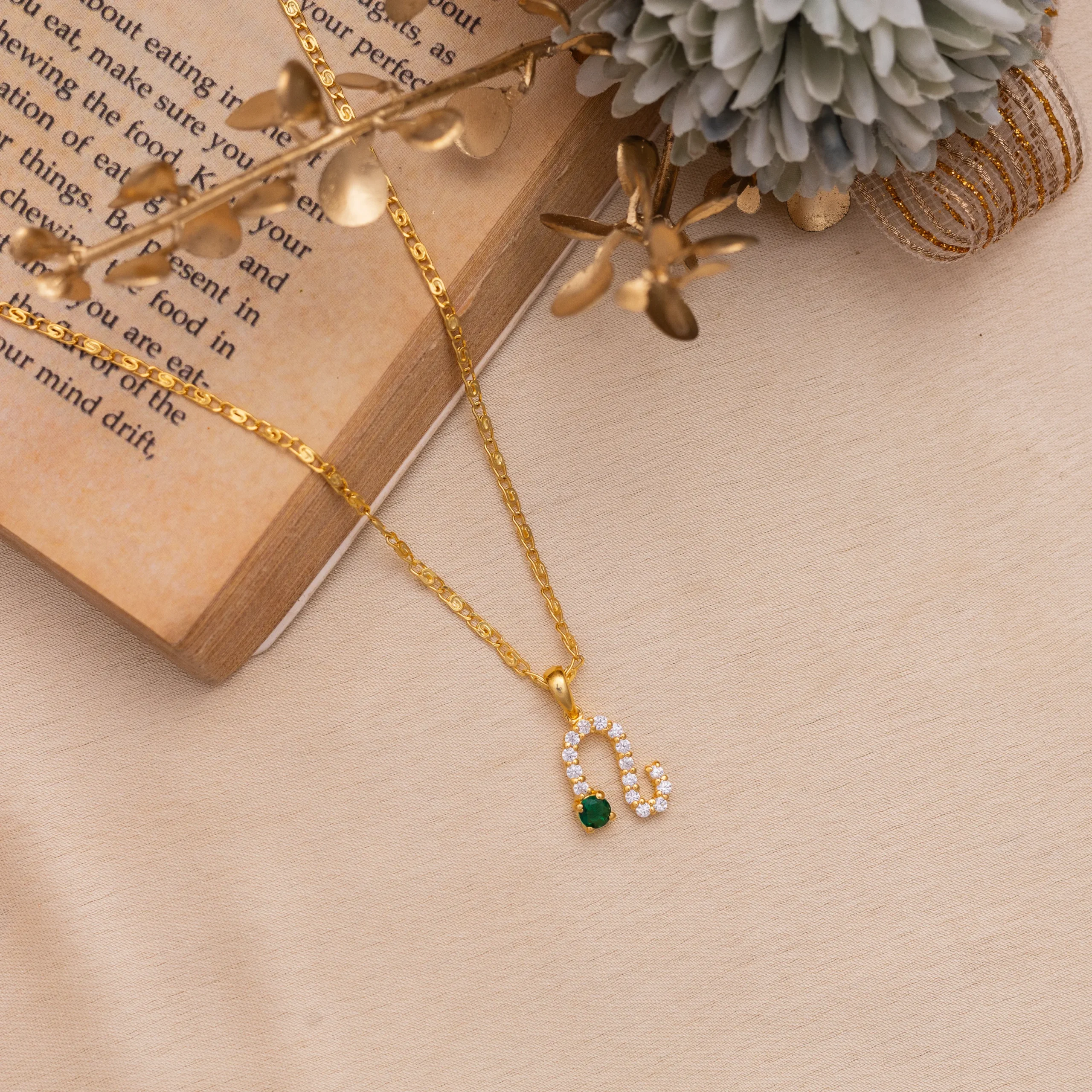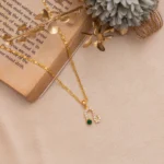 Leo Radiance Zodiac Pendant- Celebrate your bold and regal spirit with the Leo Radiance Zodiac Pendant – Emerald Edition, a stunning tribute to those born under the sign of the lion. Crafted in 18K gold-plated finish, the pendant forms the elegant Leo symbol, adorned with a trail of brilliant white stones that shimmer like stars in your celestial constellation.