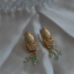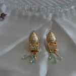 The Mint Meenakari Dewdrop Danglers are a perfect blend of pastel elegance and traditional craftsmanship. Each earring features a delicate teardrop-shaped meenakari motif in soothing ivory and mint tones, framed with shimmering stones for a touch of luxury.