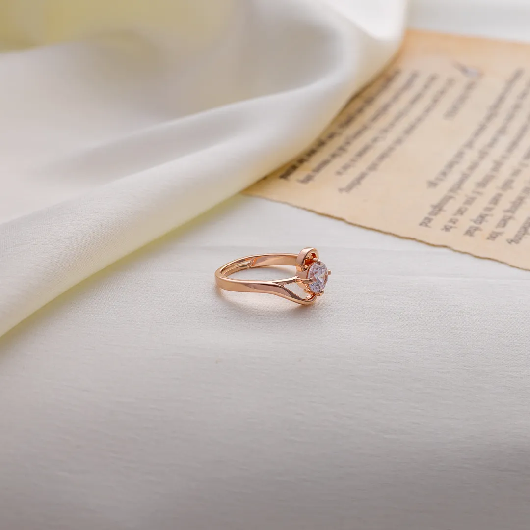Confident, refined, and sculpted for timeless appeal — the Regal Gleam Solitaire Band blends strength with sparkle in the most graceful way. Crafted in a radiant rose-gold finish, it features a luminous round-cut solitaire stone held by a wide, polished band, exuding bold presence and sophisticated charm.