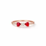 Delicate, romantic, and timeless — the Scarlet Twin Heart Ring is designed to celebrate love in its purest form. Crafted in a sleek rose-gold tone band, this elegant ring features two vibrant red heart-cut stones placed on either side of a sparkling round centre crystal, symbolising connection and unity.